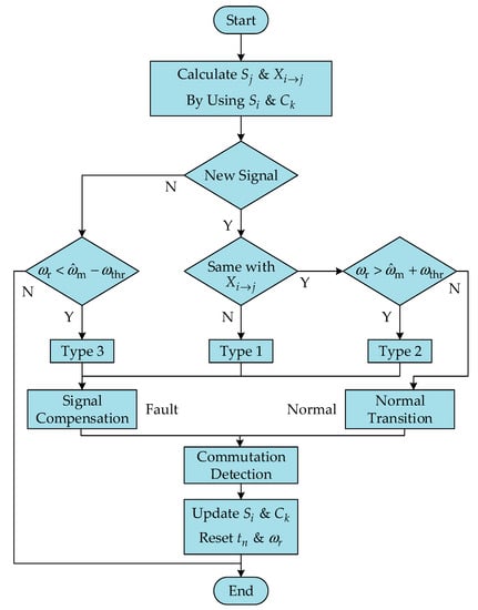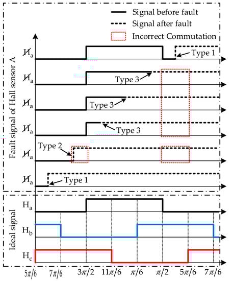 However, for the Type 2 and 3 Hall sensor faults, the proposed FSM in Figure 4 cannot finish the fault detection in real-time, as there are no abnormal state transition functions appeared when the Hall sensor fails.