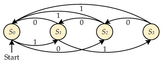 In engineering applications, a state transition diagram is usually used in FSM design, representing the transition condition and process of the system more vividly. The basic FSM is shown in Figure 3.