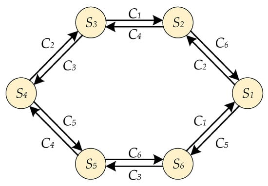The corresponding normal FSM of the PMBLDC motor drives is shown in Figure 4. Using the proposed FSM in Figure 4, the Type 1 Hall sensor fault can be detected whenever it happens, as an abnormal state transition function appeared when the Hall sensor fails. Take the case of Hall sensor faults in Figure 2, when the fault in Hall Sensor A occurs at sector and , there are abnormal state transition functions of and , while the normal state transition functions are and .