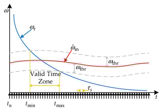 In order to analyze the time zone division in the process of state transition intuitively, the relationship among the three signals of the motor estimated speed , the error threshold and virtual reference variable is expressed in Figure 8.