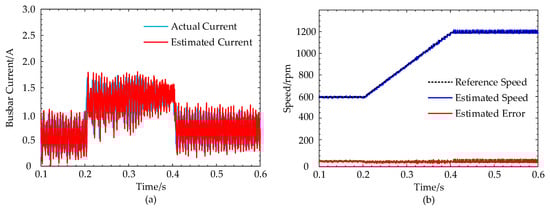 Experimental conditions: At the load variation experiments, the control system drives the PMBLDC motor to 1200 rpm. When the running time is 0.3 s, the motor load will increase from 0.05 N·m to 0.1 N·m. Meanwhile, the control system will simulate the failure of at t = 0.4 s.