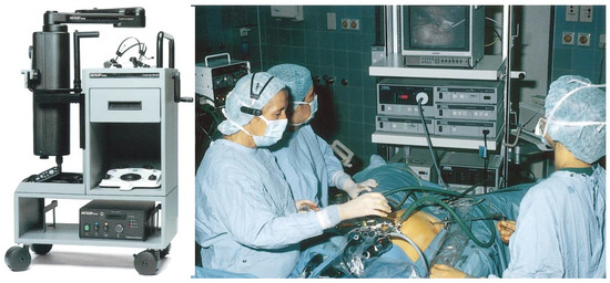 AESOP2000 and the endoscope surgery scene of using AESOP2000 (Computer Motion Company, Santa Barbara, CA, USA) [106].