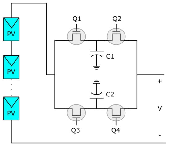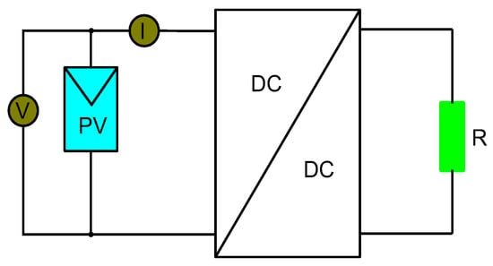 This topology is used in [17,18,19,20], but it has limitations due to the quality of the curve obtained and the fact that the variation of resistance is normally done manually. In [9], the author states that the precision of the method is not high since it is susceptible to the fact that the solar radiation and the temperature vary while the test is carried out, and that the I–V curve does not have uniformity, and a high-power rheostat is not common in the market, making this method only applicable to low-power PV generators (<1 kW).