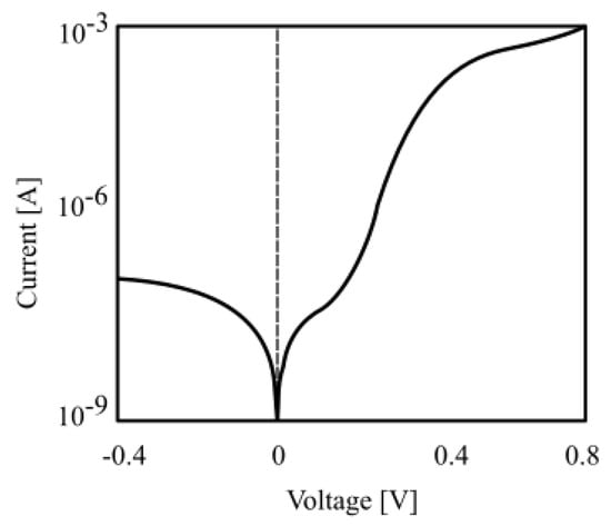 Dark I–V curve of a solar cell. Source [45], own elaboration.