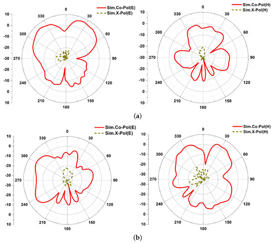 Radiation patterns for: (a) P1; and (b) P2.