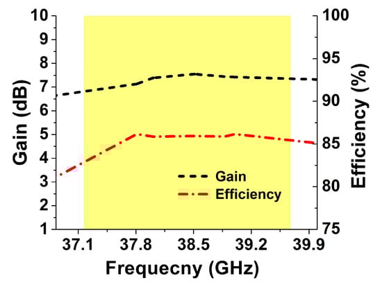 Gain and radiation efficiency of the proposed antenna system.
