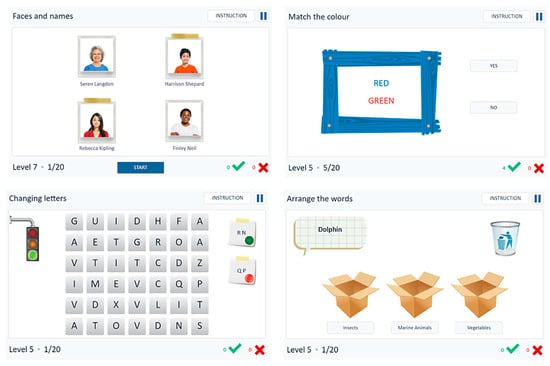 A cognitive training program is usually made up of a set of different types of exercises, such as word searches, letters and numbers, or the recognition of patterns and geometric figures. The exercises can be performed individually or in groups, although their selection should comply with an individualized intervention explicitly focusing on a person’s needs, with the difficulty level of activities adapted to the individual functioning, and must be executed under the control of a clinician (e.g., psychologist, neuropsychologist, speech therapist, occupational therapist, neurologist, or psychiatrist).