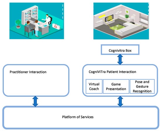 Figure 4 presents a simplified diagram of the CogniViTra Patient Interaction application with some of the components of the Platform of Services, the generic architecture of which is introduced in Figure 1.