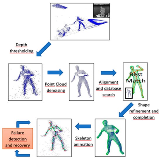 - Ye, M.; Wang, X.; Yang, R.; Ren, L.; Pollefeys, M. Accurate 3d pose estimation from a single depth image. In Proceedings of the 2011 International Conference on Computer Vision, Barcelona, Spain, 6–13 November 2011; pp. 731–738. [Google Scholar]
