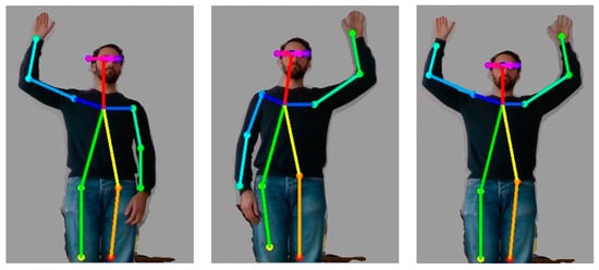 - Cao, Z.; Hidalgo, G.; Simon, T.; Wei, S.E.; Sheikh, Y. OpenPose: Realtime multi-person 2D pose estimation using Part Affinity Fields. IEEE Trans. Pattern Anal. Mach. Intell. 2019, 43, 172–186. [Google Scholar] [CrossRef]