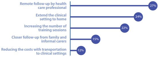 Rehabilitation programs have proven to be effective in compensating, improving, and stabilizing deficits in various diseases and nosological models. Like other rehabilitation processes, the results obtained always depend on the early start of the rehabilitation program, its intensity, and the specificity of the therapies used [26,29,32,33,34]. However, although neurological rehabilitation programs are accepted as fundamental components in current treatment models, there are strong restrictions on patient access [10,23,35,36,37], since such programs require multidisciplinary teams and are usually carried out in a hospital context, away from the patient’s home and implying the presence of family members. This translates into an enormous effort for patients, families, and institutions [33] and generates great economic burdens, both for families and health care systems [11,12]. In addition, there are limits to the effectiveness of treatment programs, given the difficulty that health care systems have in providing rehabilitation sessions in due time (i.e., right after the injury or the onset of the disease) and with the intensity, quality, and duration appropriate for the stimulation of brain tissue plasticity [38].