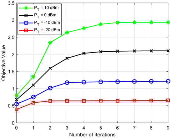 The average convergence performance of the proposed algorithm is illustrated in Figure 2. The result demonstrates that the convergence is achieved with a small number of iterations.