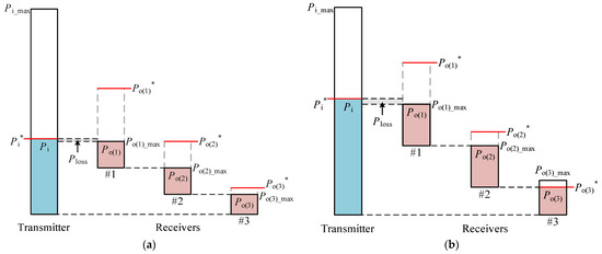 For a multi-receiver WPT system, the power distribution control strategy should satisfy two basic principles. First, the transmitter has limited power capacity, and it should not overload at any given time. Second, the power demand by each receiver should be satisfied as much as possible. When the power capacity of the transmitter meets the demand of all the receivers, every receiver should receive the required amount of power. When the power capacity of transmitter is lower than the total power demand of the receivers, and receivers should absorb less power than their demands to prevent overloading.