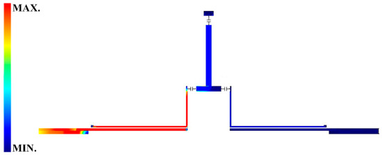 Current density distribution is employed to investigate the effect of being intrinsically switched off [27]. By utilizing the parameters of point A depicted in Figure 2, the filter is switched at 0.994 GHz, and the current density distribution is plotted in Figure 5. As seen, the T-shaped resonator does not allow flowing strong current, representing that the filter’ passband is switched off.