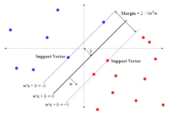 The support vector machine is basically a supervised learning model with specific learning algorithms used to compute the data for classification. In contrast with linear classification, SVM can also be used for nonlinear classification using the feature of kernel trick as shown in Figure 7.
