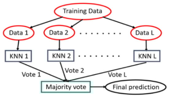 where I is a subset of elements m of {1,2, …, n} and m < n. In each step, a subspace is chosen by randomly selecting an I from C (n, m). All points are projected onto the chosen subspace. For each test point, past KNN (k nearest neighbors) (1 < k 1), the test point is assigned to the class that has the most frequent incidences in list C.