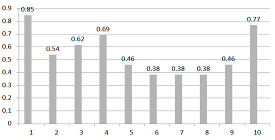 From Figure 16, we can see that the accuracy of velocity is similar to that of the X-axis and ranges from 38% to 85%. The average rate is 55.3%. It is too low to be used in primary signature identification, so velocity can only help improve accuracy.
