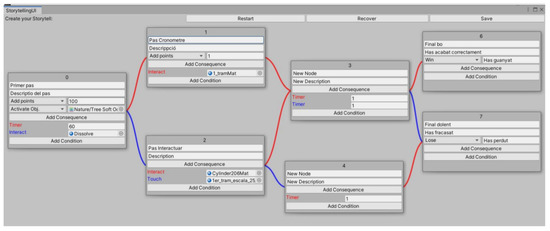 When dealing with these challenges at a functional level, it quickly becomes necessary to have new elements related motivation and progressive acquisition of skills by workers, as the main interest of the authors of this work [34]. These elements can be synthesized in the following three: the programming of cause-effect relationships, as the core of prevention mechanisms; the use of storytelling to keep the user’s attention; and, finally, the automation of the entire process, to simplify the creation of many and progressively much more complex virtual reality learning experiences [62]. The combination of all these elements completes the proposed solution for a virtual training of workers in OHS: