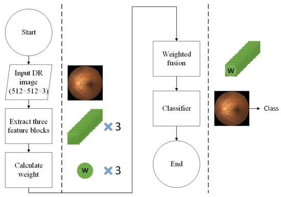 is the convolutional layer after resizing, and is the weight after adaptive weighting. Algorithm 1 shows the details of the proposed method for DR severity identification.