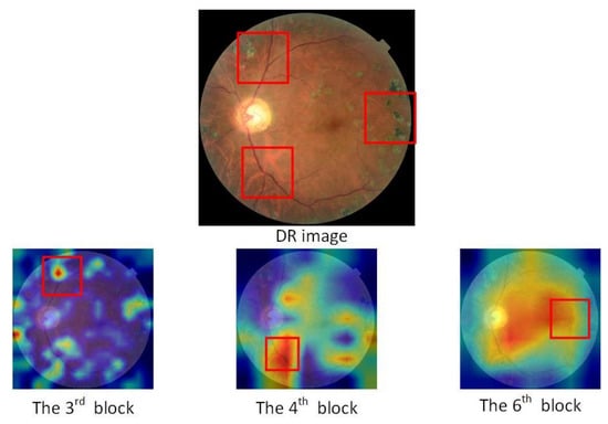 According to the heat map based on the Grad-CAM of DR image shown in Figure 3, we can see that the information reflected by different feature maps in the entire network is different.