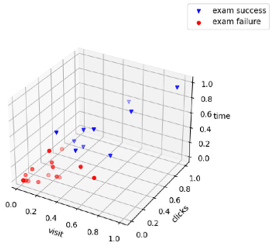 Figure 8 shows the result of applying the final kNN classifications to the data collected at the end of the course, shown in Table 1, on which the predicted exam outcomes are performed.