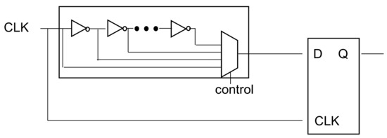 - Waris, M.; Mehta, U.; Kumaran, R.; Mehta, S.; Chowdhury, A.R. An all digital delay lock loop architecture for high precision timing generator. In Proceedings of the 2015 19th International Symposium on VLSI Design and Test, Ahmedabad, India, 26–29 June 2015; pp. 1–6. [Google Scholar]