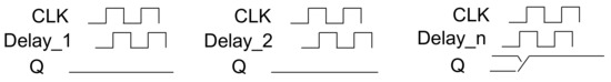 Figure 8 shows how the output Q of the flip-flop changes with changing delays. The Q value changes when the clock cycles over. This lets you know where the current delay is.