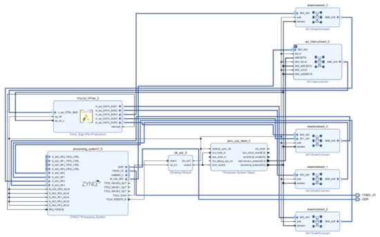 Figure 9 shows a block diagram of the entire FPGA system. The IP synthesized through HLS was connected to the PS for control, and AXI was used to access the DRAM and divided data.