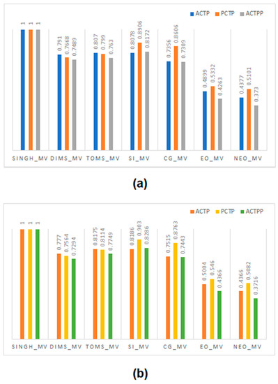 In Figure 7a, the blue, orange and grey bars denote normalized ACTP, PCTP and ACTPP, respectively, corresponding to RTZH, and in Figure 7b, the orange, yellow and green bars denote the same order of normalized FOMs with respect to RTOH. It is clear from Figure 7a,b that TMR implementations utilizing the proposed majority voter (NEO_MV) achieve better optimized FOMs compared to TMR implementations incorporating the other majority voters. This is due to the reduced design metrics reported for NEO_MV compared to its counterparts, as noted from Table 3.
