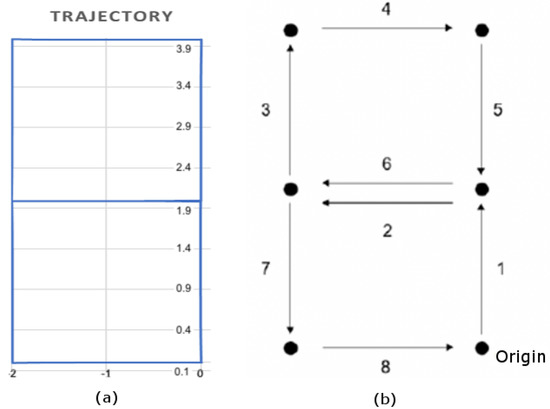 Robot operation. (a) Trajectory calculated from internal odometry and (b) Sequence of movements.