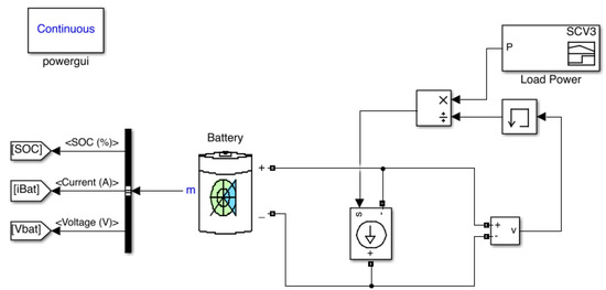 The Simulink circuit made to simulate the actual powertrain can be seen in Figure 8. It is a simple circuit where the load power profile of the industrial robot is used to generate the corresponding load current. The Simulink battery model give as output variables as SOC, current and voltage. As the battery is the only power source of the powertrain, it is expected that the load current will be equal to the one going through the battery.