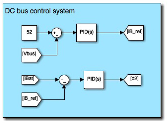 The last step before starting the simulation is the battery control system’s sizing, where two different controllers are needed. As before, PI controllers will be selected, as the integral part is able to reduce the error in stationary state, and the proportional part makes it adapt quicker. The values of the controller for the dc bus are and while the values for the battery current loop are and .