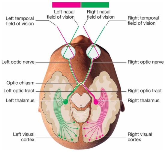 - Biology Forums Gallery Optic Nerve, Optic Chiasm, Thalamus, and Visual Cortex. Biology Forums. Available online: https://biology-forums.com/index.php?action=gallery;sa=view;id=13954 (accessed on 3 June 2021).