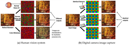 Human vs. machine visual perception (information and image courtesy of open access. Adapted from refs. [52,53,54,55,56,57]).