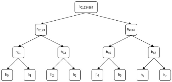 Merkle hash tree (MHT) of 8 leaves.