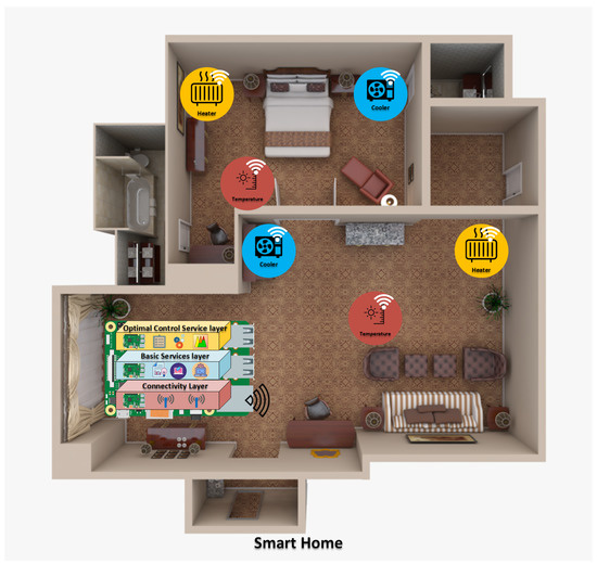 We assume is the optimal parameter that can compromise the required environmental settings and energy consumption. With the user’s acceptable range of temperatures, the optimal parameter . With the above assumption the total energy to maintain the optimal setting in the smart home is expressed with the following formula.