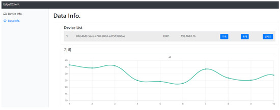Figure 14 shows the implementation result for presenting history data of a device that is selected from the device list. The selected device may have multiple resources, and data of resources are sent to the EdgeX framework through event publishing. The data are stored in the core data service of EdgeX framework, and the Web Client requests the data from the EdgeX framework.