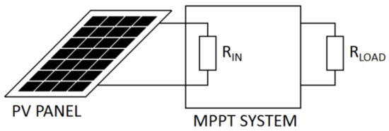 To reach the maximum power point of a PV panel, the MPPT system needs to set its input resistance value RIN to be equal to the internal resistance of the panel. When an MPPT system features a DC/DC converter, the input resistance is modified by the duty cycle of the PWM signal. However, since the internal resistance of a PV panel changes with the temperature and irradiance level, the MPPT system needs to constantly monitor the output power of the PV panel and modify the duty cycle of the converter in order to drain the maximum amount of energy [5].