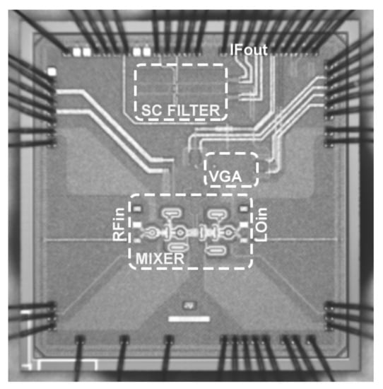 Micrograph of the seventh order SC low-pass filter in a complete 77-GHz radar receiver. Reproduced from []. Copyright 2021, IEEE.