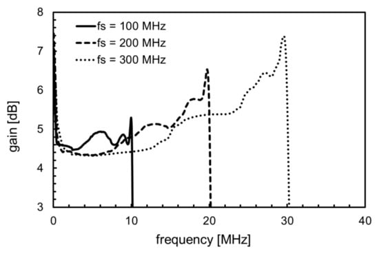 Measured LPF frequency response for different values of the sampling frequency.