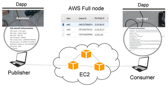 For the transaction of content with a size of 50 MB, the total transaction times were 200 and 67.5 s for 5 and 20 KB segments, respectively. The transaction delay for the Dapp including a JSON RPC can be a burden as the number of transactions increases due to the small segment size. As a consequence, using a large data chunk is efficient, but the payment amount should increase in turn, and concurrent trading can suffer. A delay of about a minute is not excessive when buying 50 MB of video content, but this could increase further due to network congestion and delay in the real world.