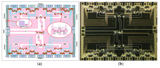 - Wang, X.S.; Wang, X.; Lu, F.; Zhang, C.; Dong, Z.; Wang, L.; Ma, R.; Shi, Z.; Wang, A.; Chang, M.C.F.; et al. Concurrent Design Analysis of High-Linearity SP10T Switch With 8.5 kV ESD Protection. IEEE J. Solid State Circ. 2014, 49, 1927–1941. [Google Scholar] [CrossRef]