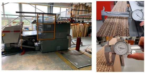 (Left), die-cutting machine for the industrial production of panels. (Right), two prototypes used for the tests.