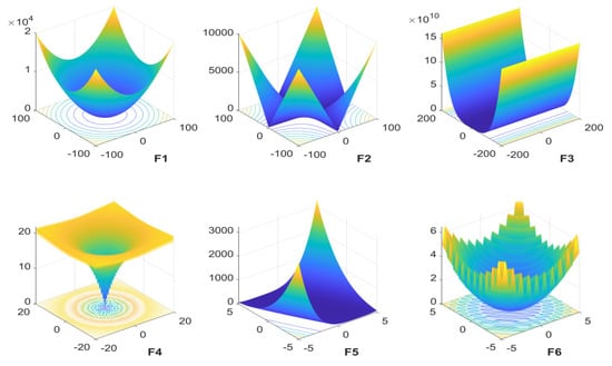 Table 1 shows the expressions and parameter settings of the six test functions. Figure 1 shows the graph of each test function of two dimension. In order to clearly show the detailed characteristics of the function, the definition domain of each function in the figure takes the local range, and the distribution characteristics of the optimal value of each test function can be found.