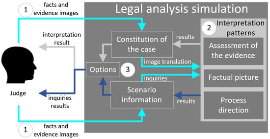 During a case, the judges can run legal simulations to delve into the merits of the case gradually. The simulation carried out by the system is described below.