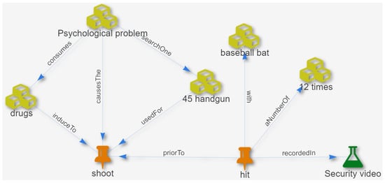 Example of an EGI showing a factual picture used to analyze the merits of a homicide case in real-time according to the graphical interpretation. Internally each image is translated into a node containing a set of attributes, and the arrows turn into edges containing a set of vectors.