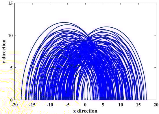 Figure 3 shows the ellipses for the scenario in Figure 1. The number of intermediate points are taken to be 5, i.e., (number of ellipses equals to ). From the figure, it can be seen that each ellipse intersects with other ellipses at various locations. Some of the intersection points represent target locations, i.e., intersection points corresponding to the ellipses from the same target and different receivers. Some of the intersection points are from the ellipses belonging to different targets. As noted, the number of intersection points from the ellipses arising from different targets is very large compared to the number of intersection points of ellipses belonging to the same target. From Figure 3 we can see that it is hard to estimate the target locations. The aim is to find the target locations from the available range measurements information.