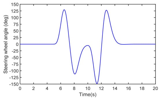 Figure 13 shows a typical curve of the steering wheel angle on the ice-snow road that is taken similarly as the input signal to the vehicle mass estimator. The tire–road friction coefficient is 0.2 and the initial vehicle speed is 20 km/h. Herein, the initial vehicle mass is identified as 1000 kg, while the real vehicle mass is 1420 kg. The simulation time is set to 20 s.
