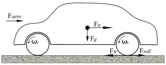 In our study, a vehicle dynamic model was used, taking into consideration the traction force, aerodynamics and road resistance. The grade resistance was assumed to be zero due to the fact that in the simulation there is no slope of the road. Our dynamic model is shown in Figure 1.