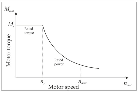 In the case of maximum acceleration of the vehicle, the traction force is limited by the rated motor torque (Figure 2) as well as by the maximum traction force, depending on the slip conditions (3).